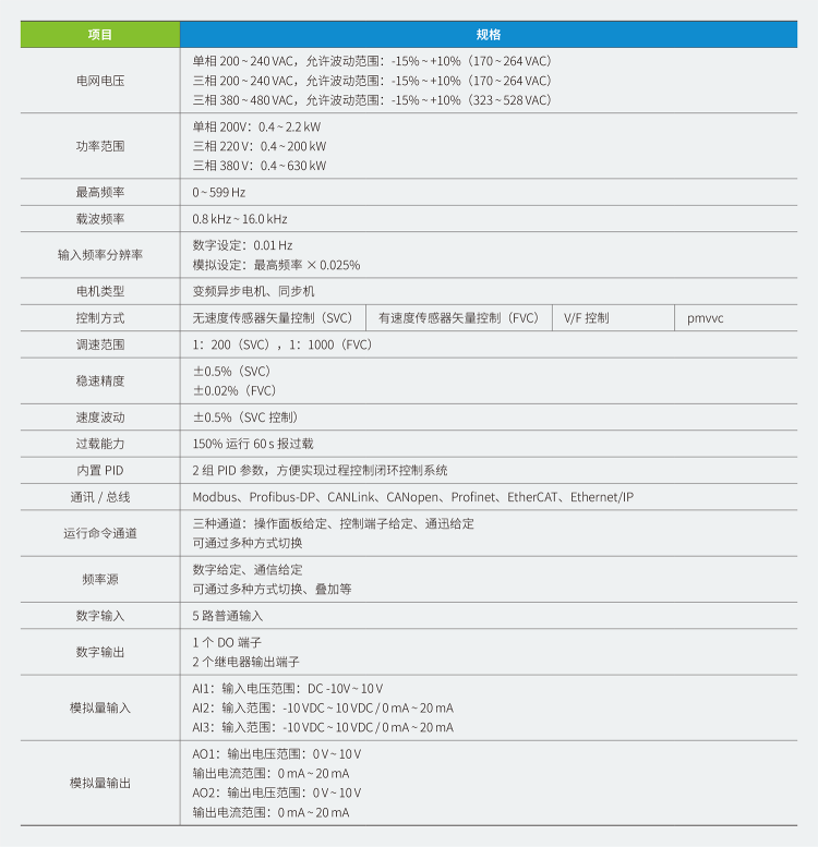 MD500-PLUS 是一款通用高性能電流矢量變頻器,主要用于控制和調節三相交流異步電機和三相交流永磁電機的速度和轉矩,可用于紡織、印刷、拉絲、機床、包裝、玻璃、食品、風機、水泵及各種自動化生產設備的驅動。